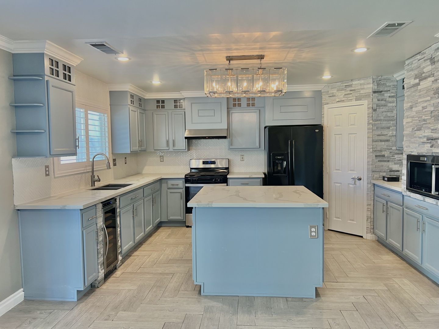 Come take a look at this beautifully updated home in the Greystone neighborhood. The interior features 4 bedrooms, a loft, 2 living rooms, 2.5 Bathrooms, convenient upstairs indoor utility hook-ups, modern updates including newer interior and cabinet paint, new flooring, recessed lighting, a wine refrigerator, new counter tops in the kitchen and upstairs bathrooms and updated cabinet hardware, added soffits with crown molding and a new hood vent cover in the kitchen, accent walls in the kitchen and formal living room.